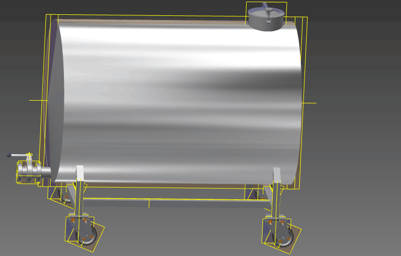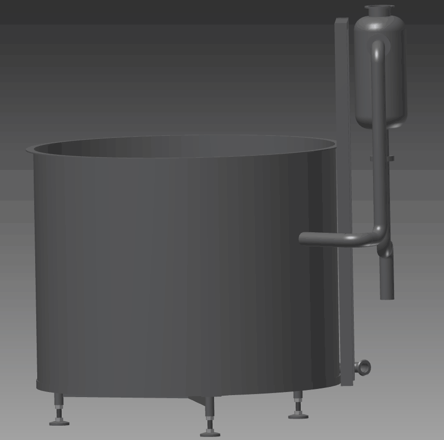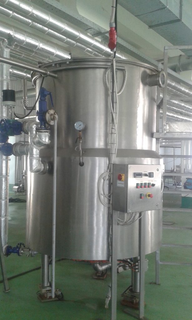 The mixing, heatable tank is used for mixing and heating various food industry liquids and mixing in additives. The mixer tank is a cylindrical vessel with a vertical axis standing on three tubular legs, with a mixer directly driven by an electric motor on top. The cylindrical shell of the vessel is stiffened by a semi-flat sheet lid on top, and the bottom is closed by a shallowly convex vessel bottom. The electric motor that rotates the mixer is located on the flanged, stiffened flat cover. The other half of the container is closed by an open lid, which facilitates the handling and cleaning of the container. The vessel is surrounded by a heating jacket on the outside, so steam heating enables the materials in the vessel to be heated. Hot surfaces are covered with thermal insulation. The tank has the technologically necessary stubs. A propeller mixer is built into the vessel for mixing materials in the vessel. The entire equipment (with the exception of the electric motor and gear unit) is made of stainless, acid-resistant steel.